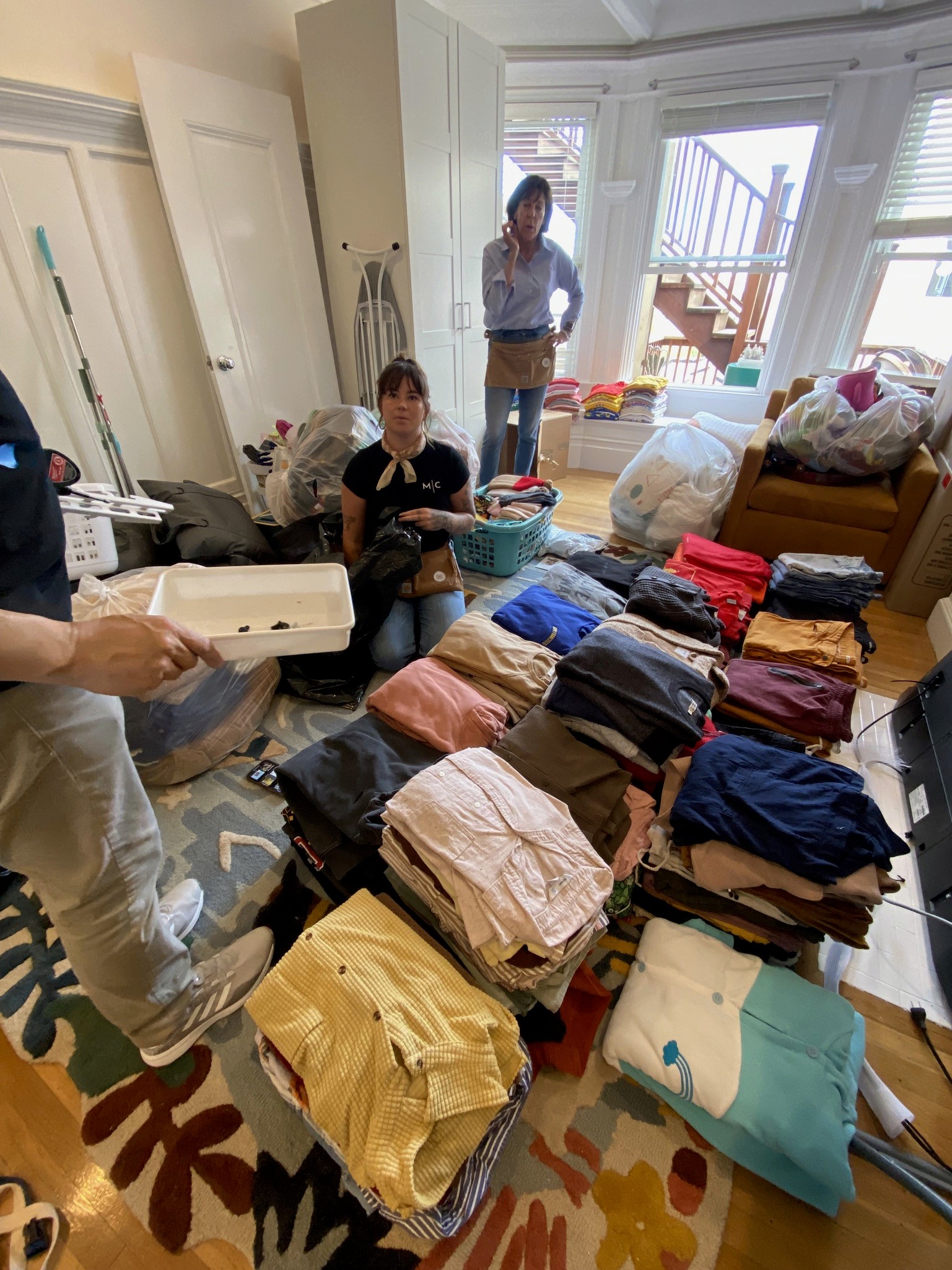 Our team (usually one or two organizers) will come ready with boxes, bags, and a clear process to help you decide what to take, store, or let go of.